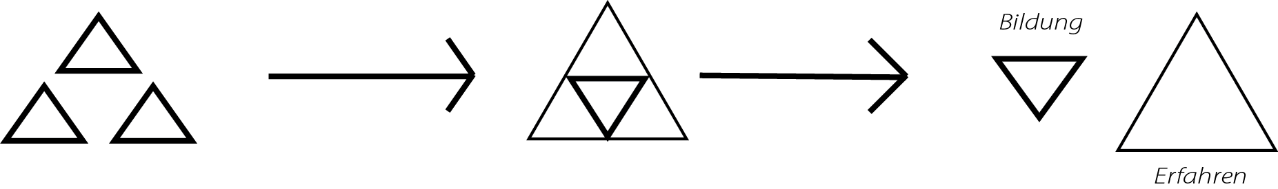 Bildung as "education" relates to the process of transforming initial sensory impressions into abstract knowledge based on science. In this process, individual knowledge becomes shared, and people become a part of society. This process of education collects both individual and shared experiences which individually and collectively move through different levels of abstraction. The less abstract forms of knowledge are themselves incorporated into higher abstraction and are able to be recalled and manipulated with minimal effort.